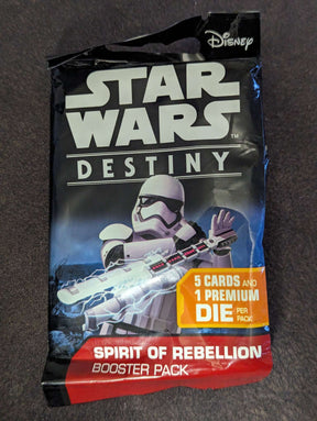 Star Wars Destiny | Spirit of Rebellion | Mystery Blind Bag | 5 Cards and 1 Premium Dice Booster Pack is backordered and will ship as soon as it is back in stock.
