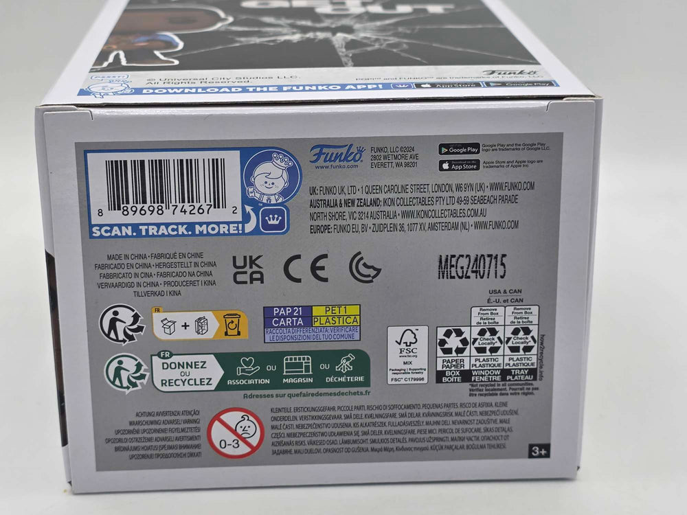 Collect this striking Funko POP! vinyl figure of Chris Washington from the cult classic film Get Out. Standing at approximately 9 cm tall, this detailed collectible captures an iconic moment from the thriller. Housed in protective window box packaging, it's perfect for display or as a gift for horror and film enthusiasts. Add this must-have movie memorabilia to your collection today.